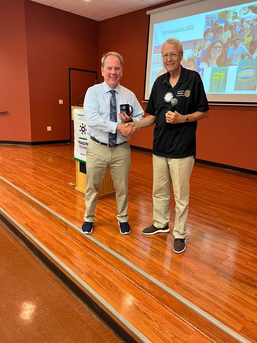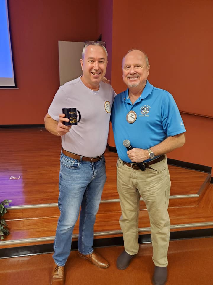 Our special guests were District 5960 Governor Troy Willingham and Assistant District Governor Lace Blue, who eloquently introduced Governor Troy. He showed his enthusiasm for the Rotary mission by talking about several service projects he was personally involved with as a member of the St Pete's Rotary Club. He also expressed his appreciation for our Club's efforts to organize the annual Stone Crab Jam and raising the kinds of funds for charity that have such a significant impact on our community. He made note of our Haiti Water Project and our efforts on the path to gaining global project approval and, hopefully soon, seeing actual implementation. Finally, he reminded us of the importance of having a multi-year leadership succession plan in place for our club.