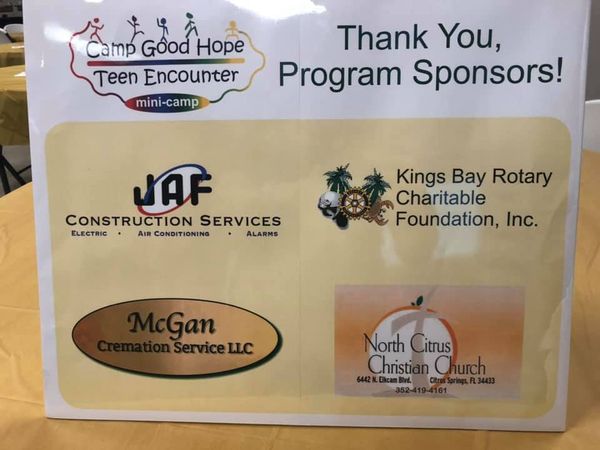 Guest speakers, Jonathan Beard with Citrus Friends of the Nature Coast, spoke about Camp Good Hope, Teen Encounter and Ongoing “Mini-Camps” help campers understand grief and learn to cope through interactive stations and support.