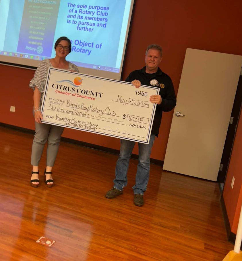 05/25/2022 KBR was presented a donation for volunteering at the Manatee Festival from the Citrus County Chamber of Commerce! Thank you to everyone that volunteered.