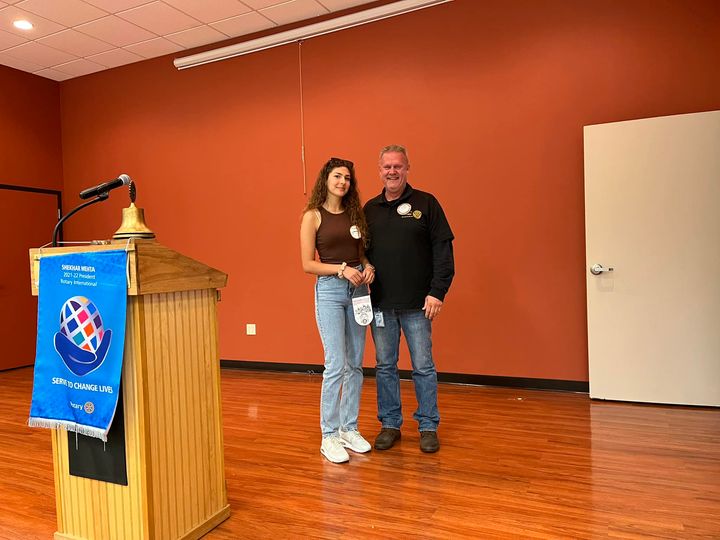 Jana Elisova visited us at last weeks meeting. She was an exchange student with us in the 2019-2020 Rotary year. She is from Czechia and gave us a flag from her club.