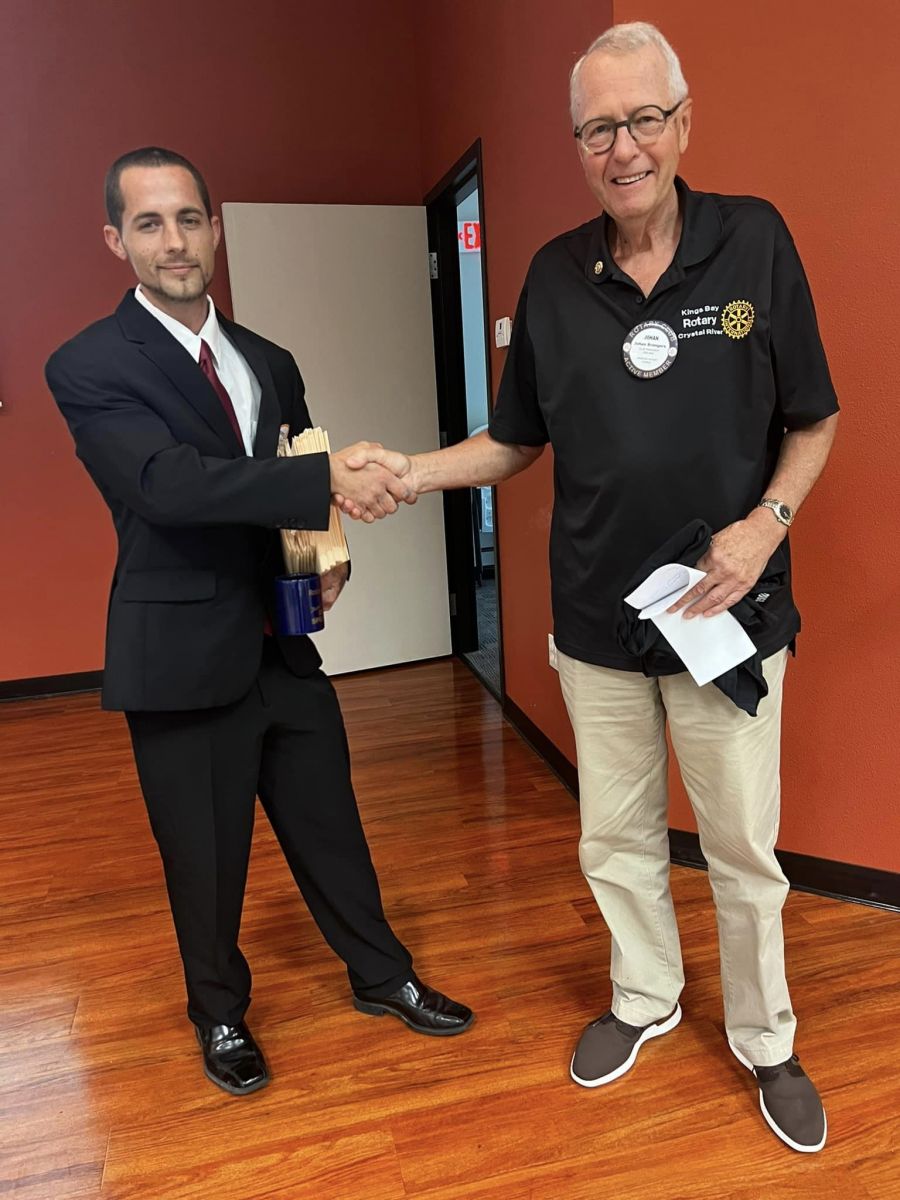 Joshua Hicks of the Handy Hicks Company was our speaker. At the age of 25, he founded his own company that provides handymen's services to the poorest segment of our county's population. Furthermore, Joshua tells the story of how he came to organize a skill-building class for young people in the age group of 10 to 17 years old. Various local firms in the trades provide practical teaching sessions to a group of 28 youngsters, who participate in a 12-week training period. The program is now in its third year and recently received the IRS's non-profit status.