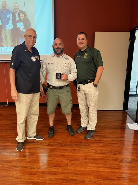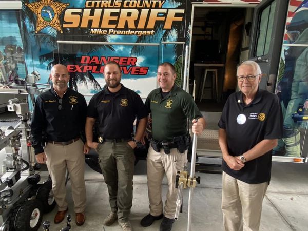 It was a special treat for us to host Aiden Marshall and his team of four detectives on this "chicken day" and hear them speak about their duties in the Bomb Squad of Citrus County. Aiden, who is an honorary member of our club, explained how the team goes through intensive 6-week training under guidance by the FBI. The squad also trains regularly with Tampa PD as part of a regional team, serving a number of counties. All funding for the team is provided by the Department of Homeland Security, so citizens are not burdened by the high cost of equipment. The detectives proudly showed off their equipment and demonstrated how robots are used to remove ordinance or explosive devices. We are proud to have Aiden as part of our Rotary Club and are thankful that he is also overseeing security at our upcoming Stone Crab Jam.